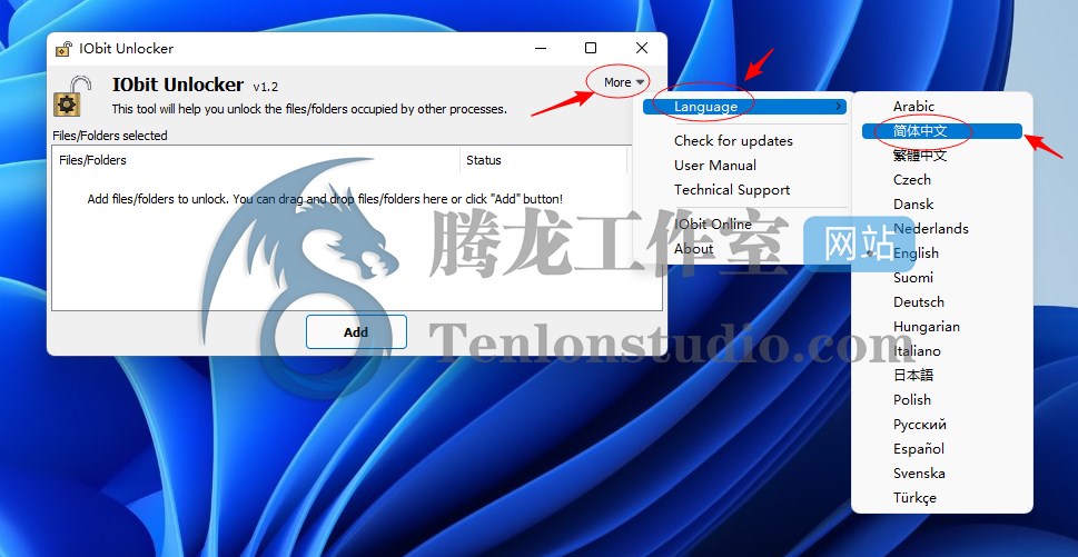 便携版程序,无需安装,解压即用。More – Language 可将界面语言更改为简体中文。