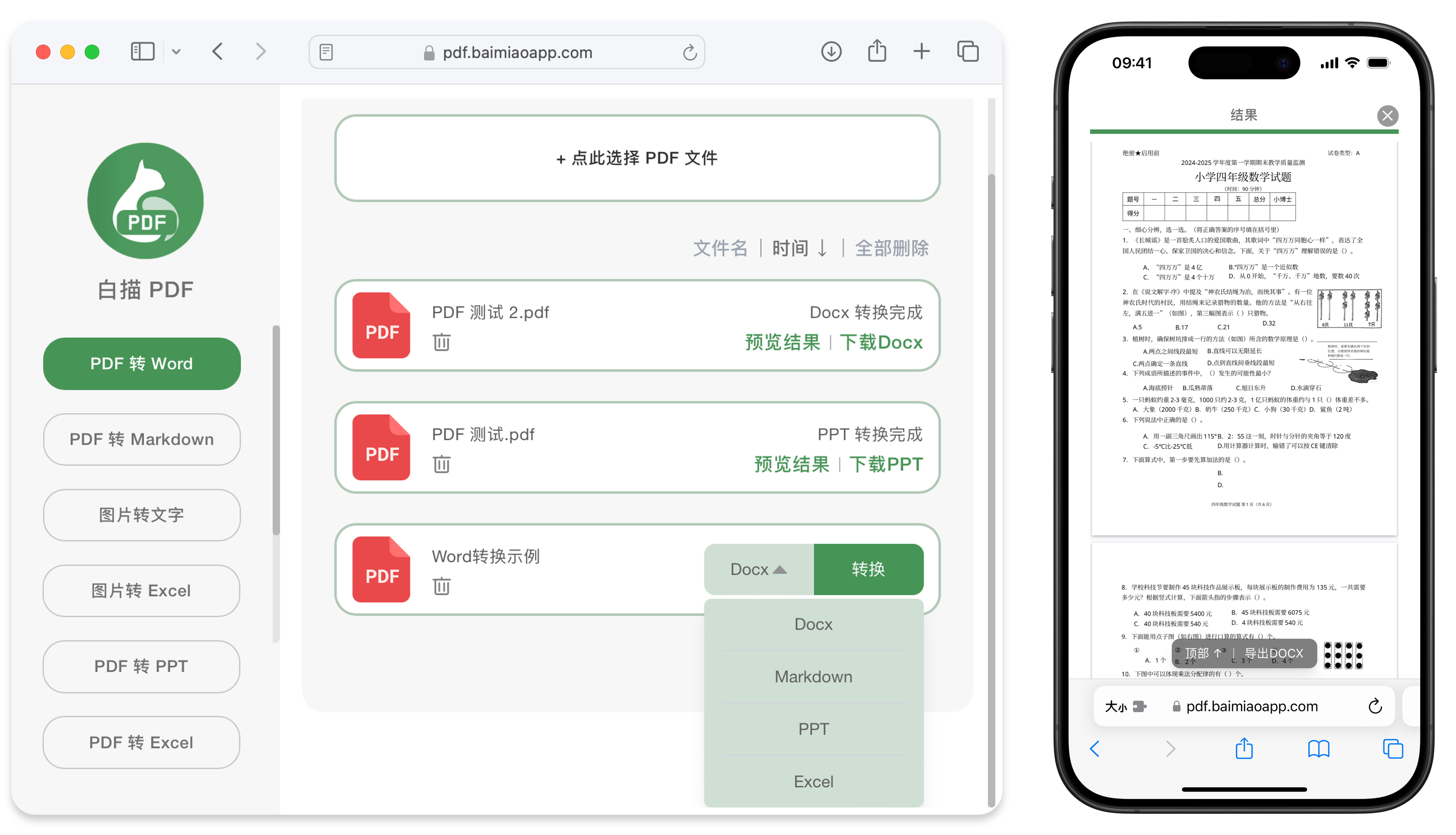 白描 PDF 是一款便捷的在线工具,支持 PDF 转 Word、Markdown 等操作及竖排文本识别。