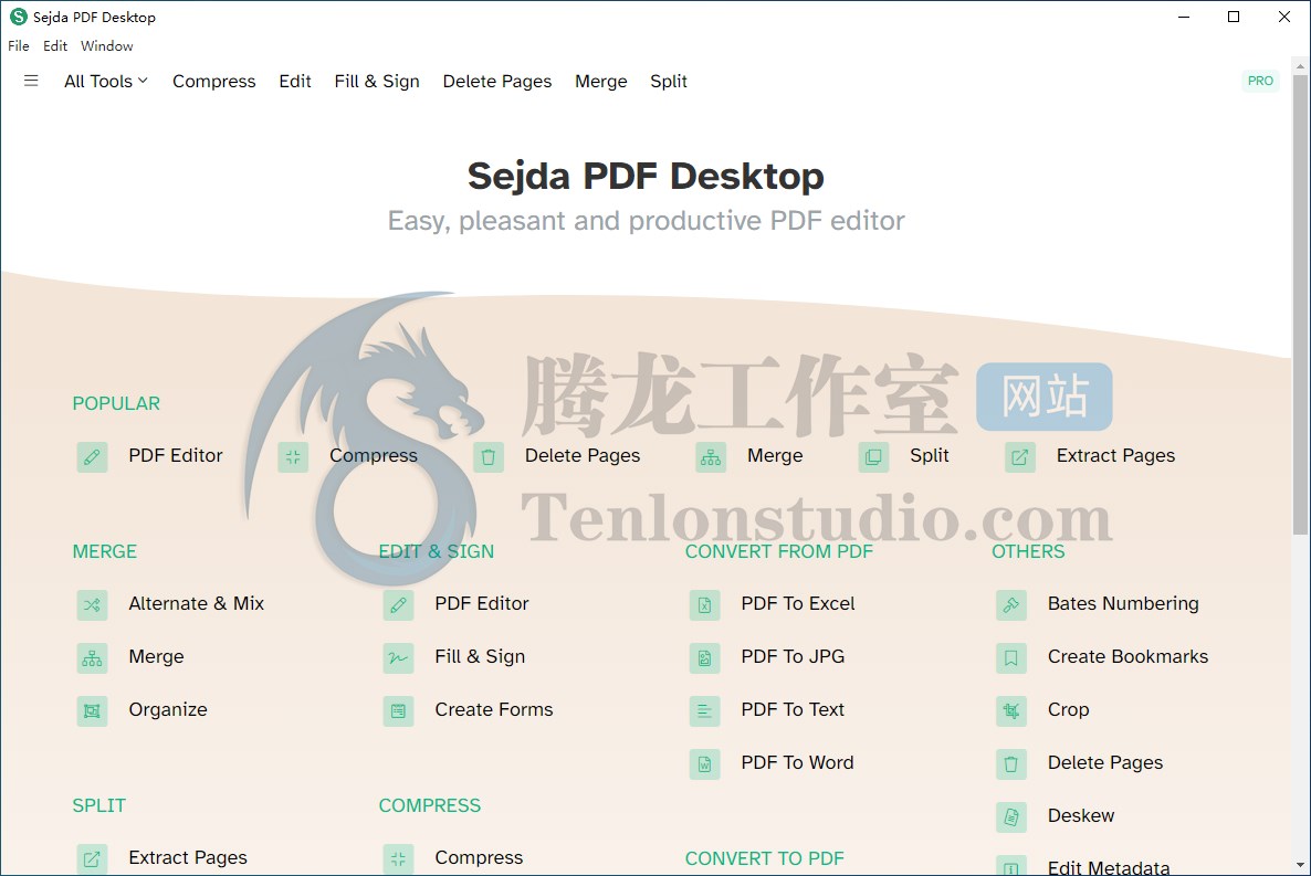 可视化组合和重新排序页面,合并多个 PDF 文件。交替和混合来自不同文件的奇数页和偶数页。按页拆分文档。提取单独的文档。按大小、书签或文本出现拆分。划分两个页面布局扫描将 PDF 文件转换为 Word、Excel 和图像。将图像转换为 PDF 文件减小 PDF 文件的大小。优化图像和其他资源添加、编辑或移动 PDF 中的文本。更改字体类型、大小和样式。插入、重新排序、移动或删除页面。添加签名、突出显示文本和形状。为 PDF 添加复制和编辑保护。添加密码以保护您的 PDF 免受未经批准的访问。为 PDF 文档添加图像或文本水印。使 PDF 文本和图像灰度化。修剪 PDF 边距、调整可见页面区域、更改 PDF 页面大小。