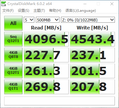 用CrystalDiskMark跑一下测试