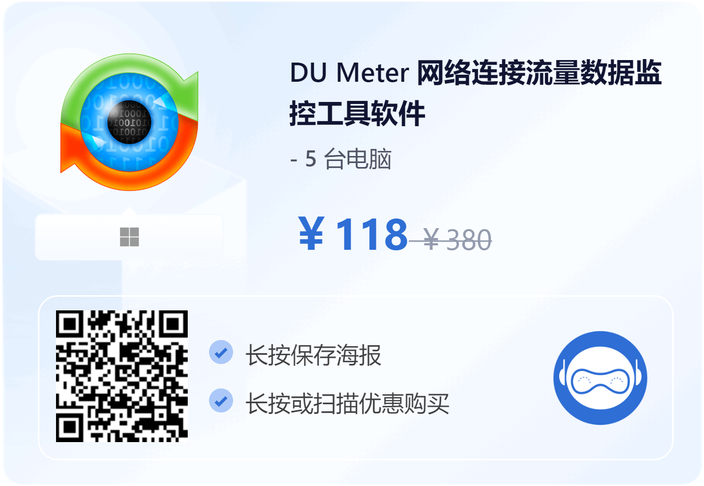 DU Meter 是一款网络流量监控工具,由 Hagel Technologies 开发,支持 Windows 系统。它提供实时数据流量监控,以数字和图形形式显示,帮助用户了解网络连接效率,控制带宽使用,并防止未授权的数据传输。软件支持多语言,提供 30 天免费试用,并有详细的报告功能。腾龙工作室网站用户专享优惠:一台电脑仅需58元!5台电脑仅需118元!购买链接:https://apsgo.cn/iYNXTW