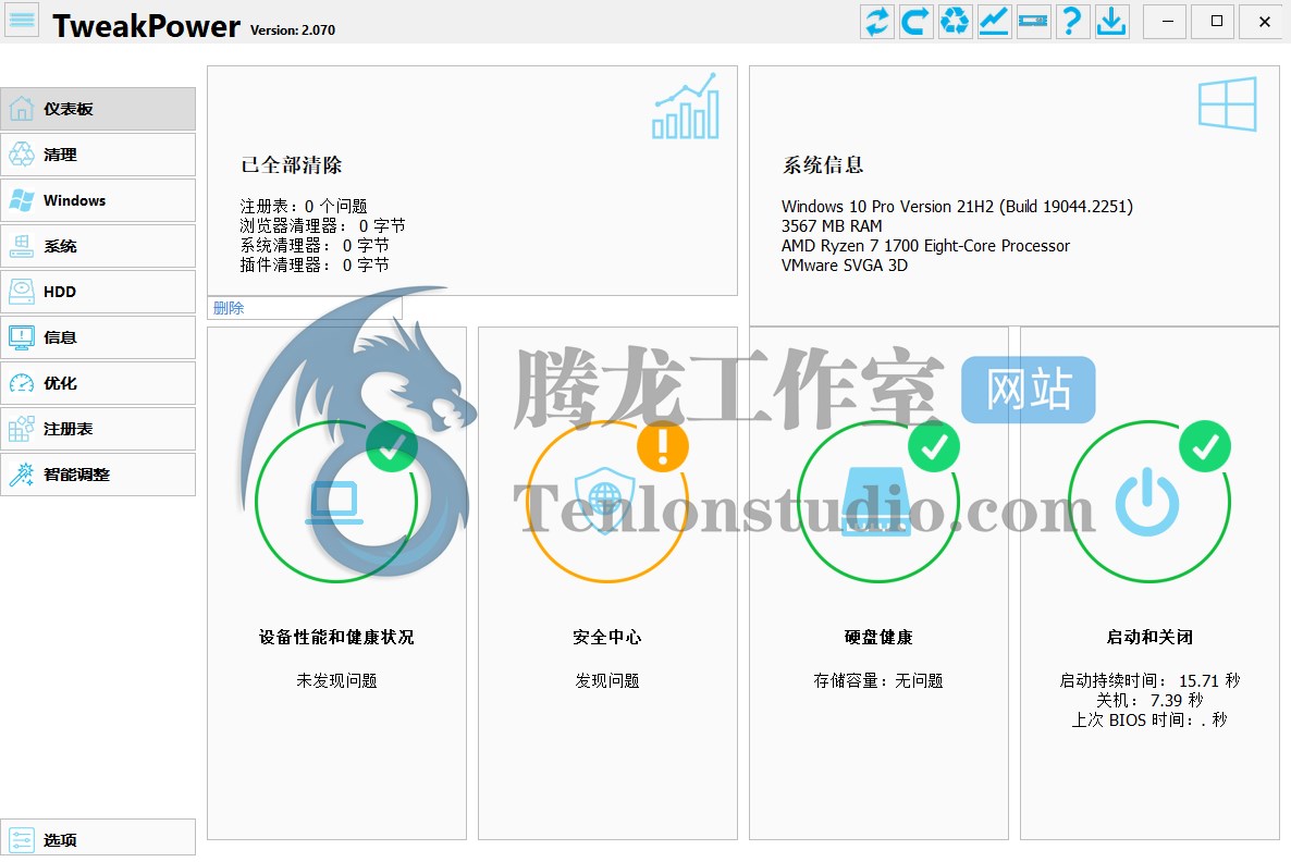 TweakPower 是一款一体化套件,旨在让您和您家人的所有计算机以最佳速度和效率运行。TweakPower 是一款智能软件工具,允许用户微调操作系统和程序以获得最佳性能。TweakPower 可保护用户免受 PC 问题的困扰,同时提高计算机的性能和安全性。TweakPower 包含高级性能优化器,可帮助您实现超快的应用程序加载时间,提高工作速度并使游戏运行更流畅。现在,拥有一台干净的 PC 比以往任何时候都更容易。TweakPower 可以快速删除 Windows、程序和浏览器杂乱内容,同时刷新您的注册表并删除大量占用磁盘空间的内容。此外,其易于使用的向导和诊断工具可帮助您查找计算机上的漏洞和错误。