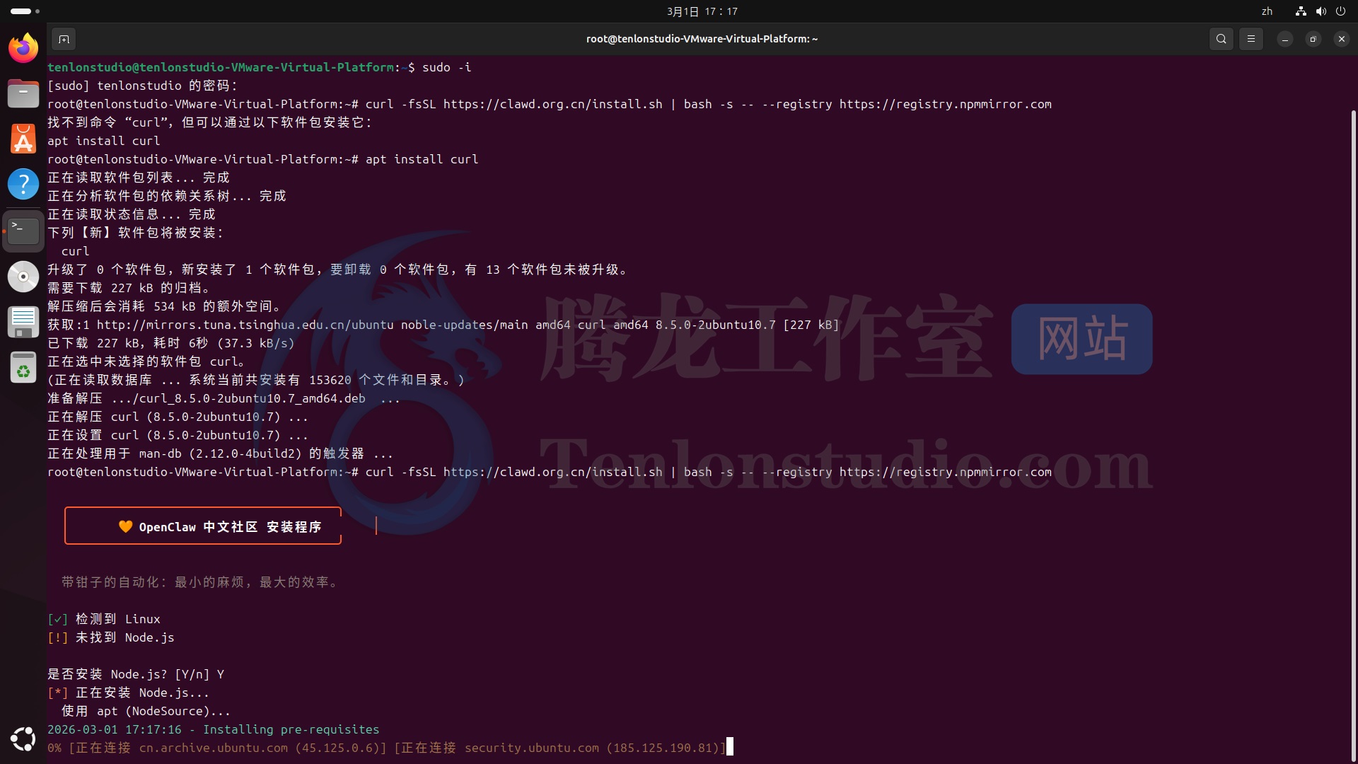我们直接使用 macOS / Linux 国内一键安装脚本: