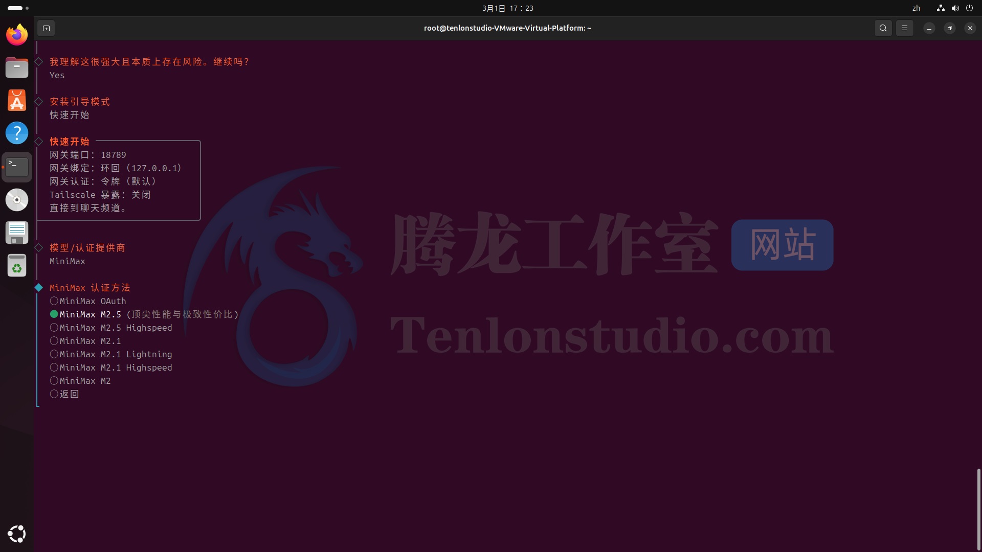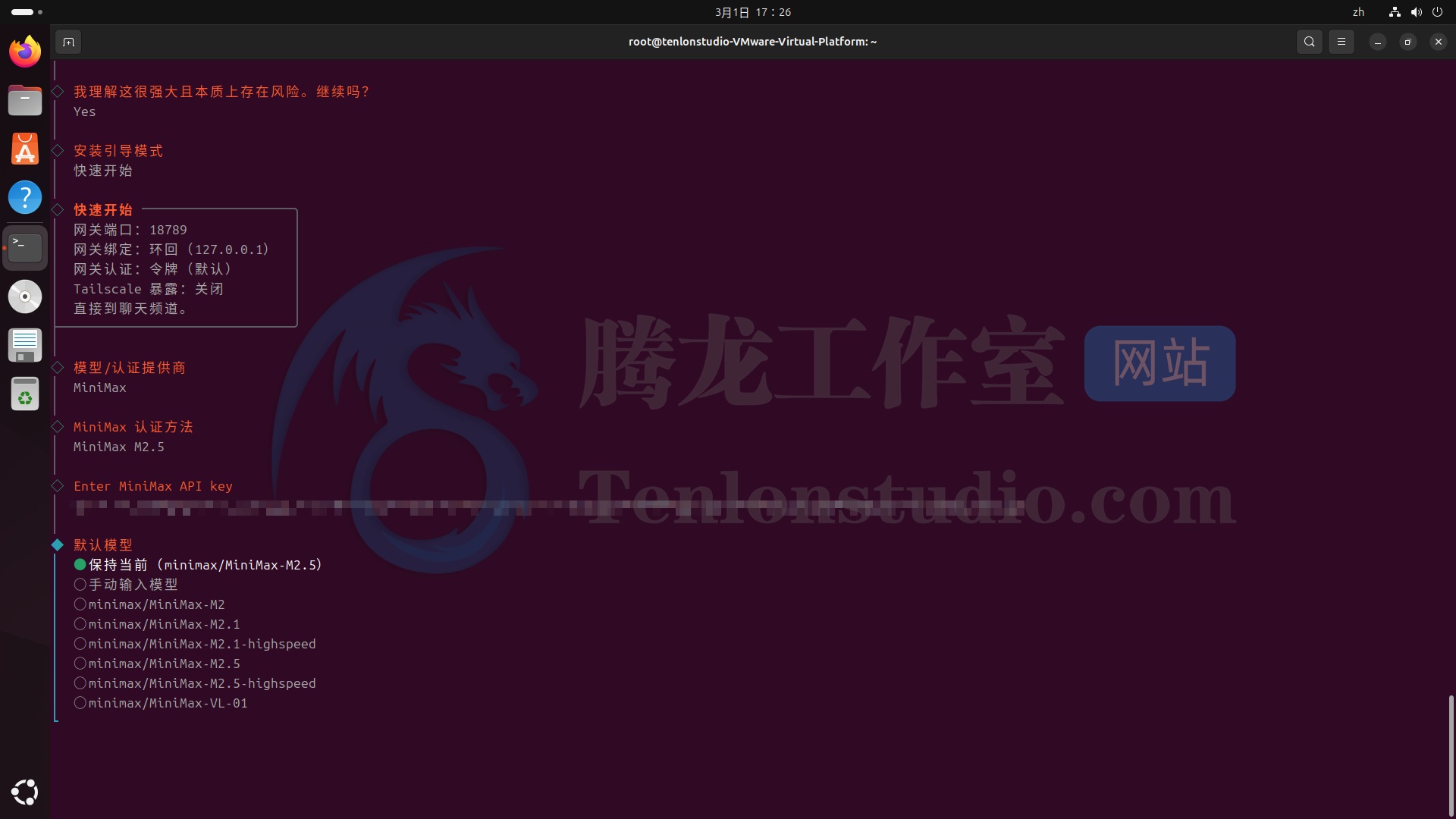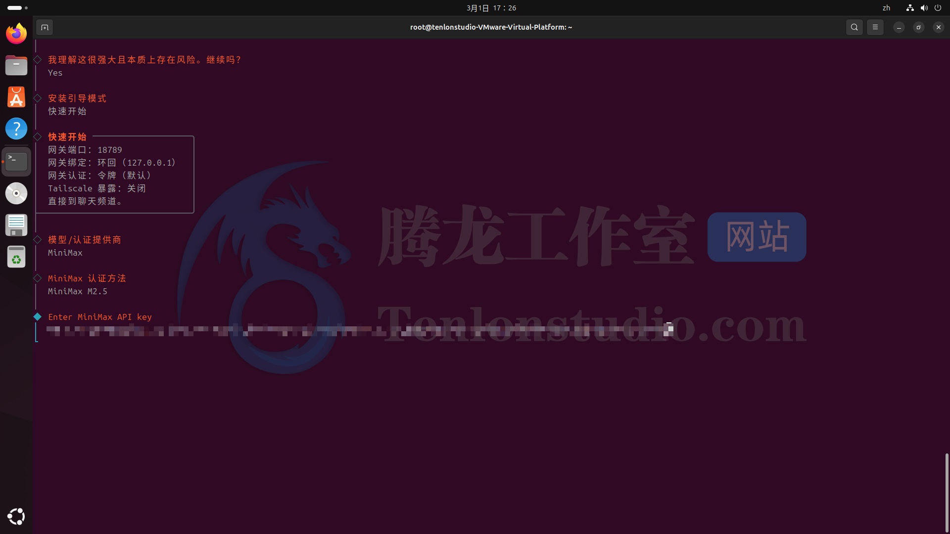 这里我使用 Ubuntu 24.04.4 Desktop 虚拟机来演示本次操作。使用 MINIMAX 接入,现在注册送 Coding Plan Trial (7天) 。本文省略了 Ubuntu 虚拟机的安装,如有需要可以评论区留言。