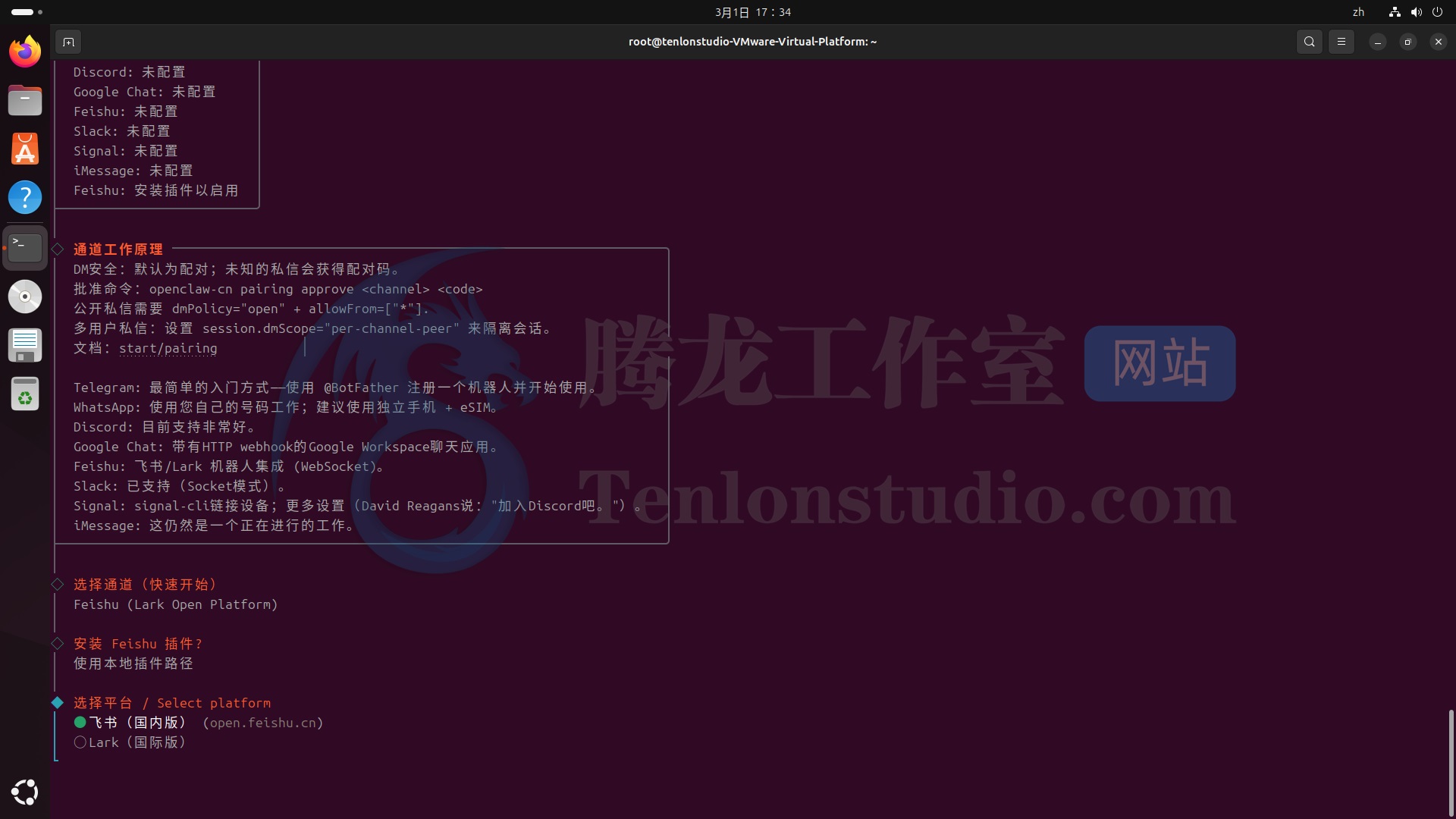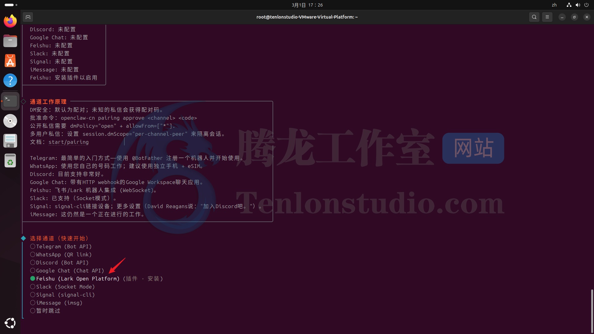 【选择通道】这里我们选择 feishu(飞书)。