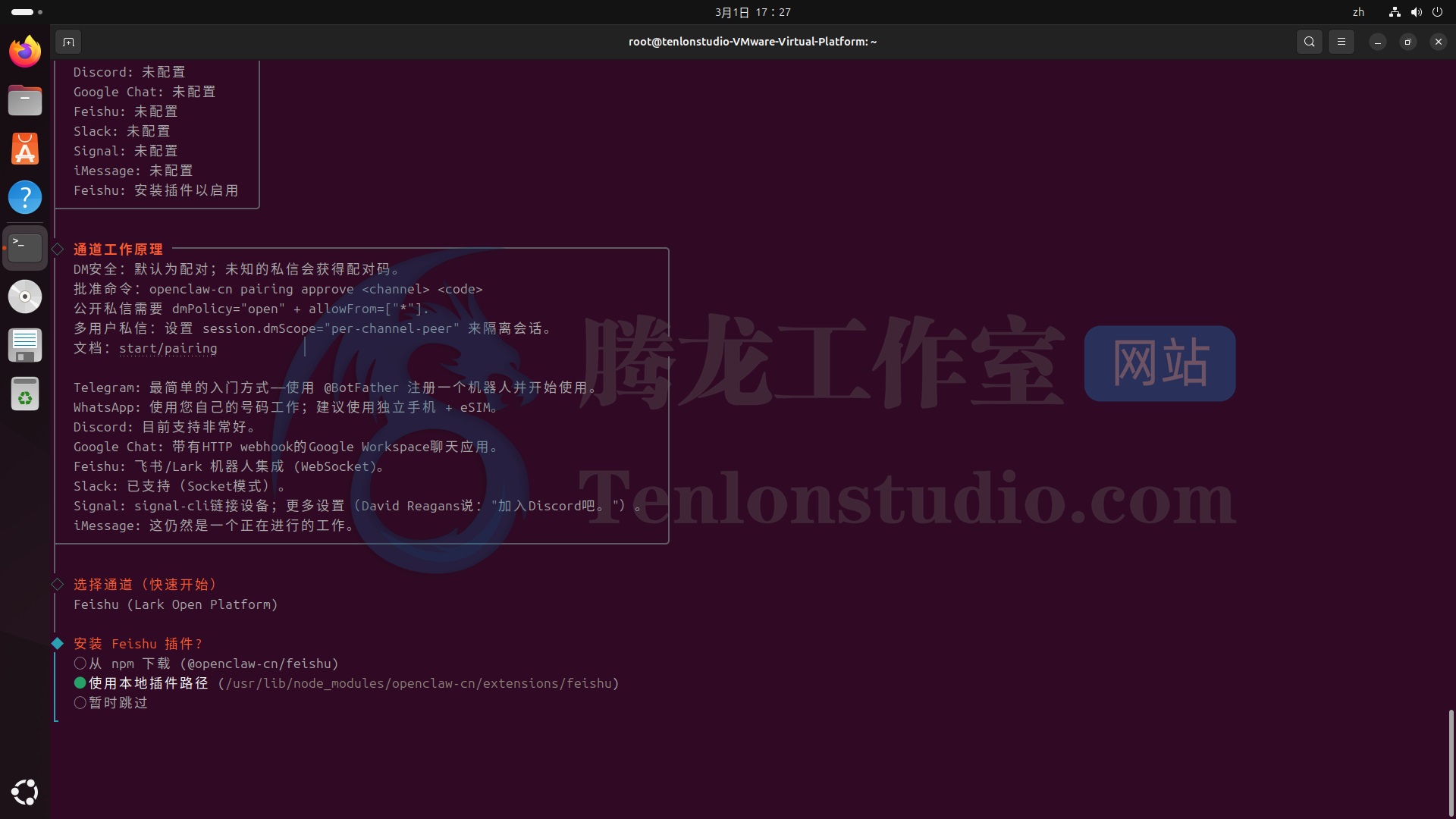 全局安装并配置飞书渠道