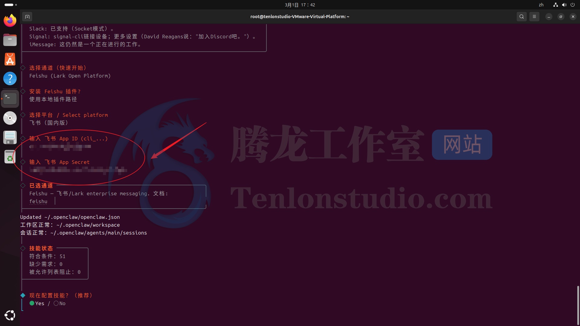 输入完成后回车,【现在配置技能?】选择【Yes】。