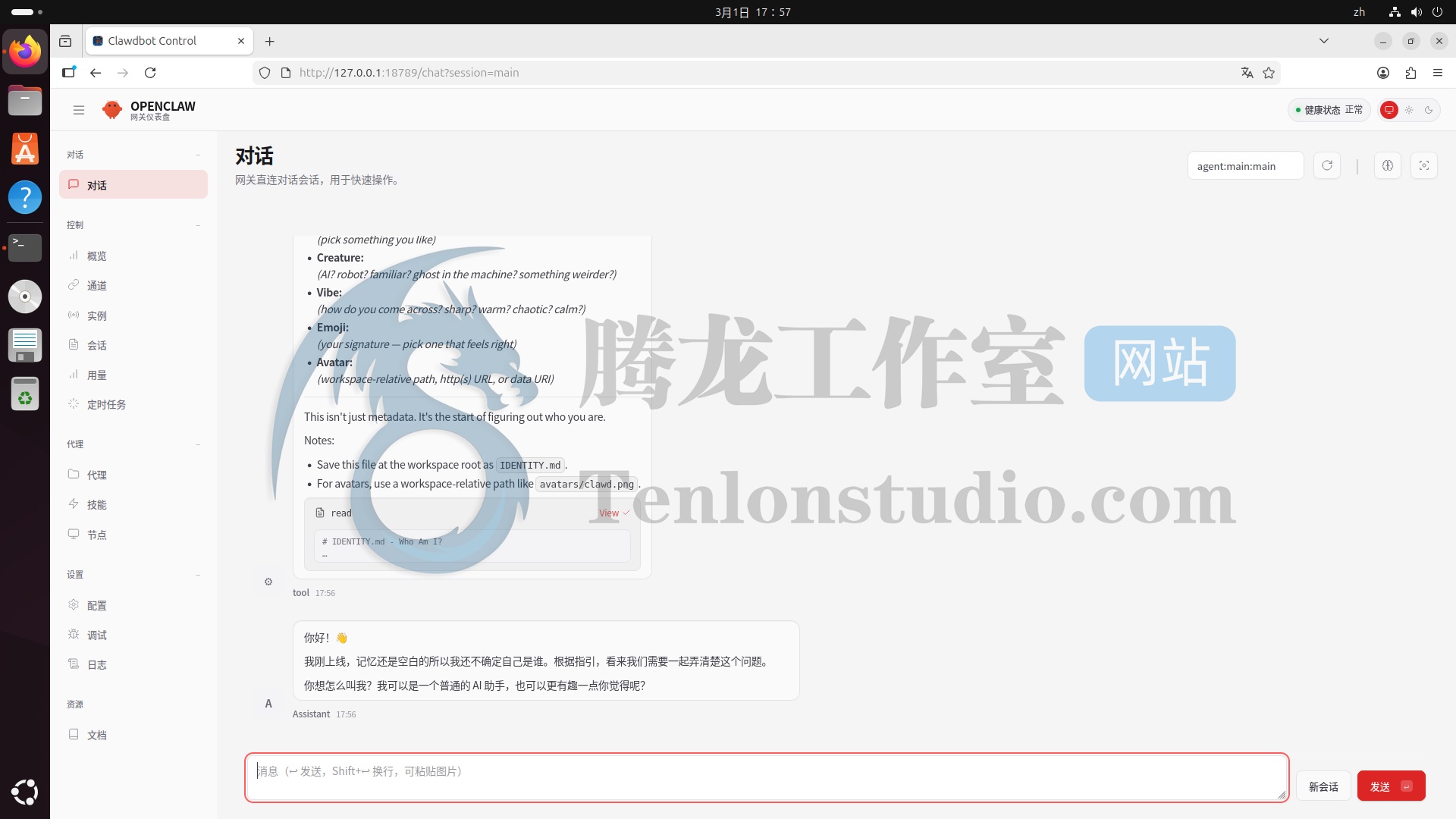 这时候我们的【网关仪表盘(http://127.0.0.1:18789/?token=xxx)】应该就能正常打开了。