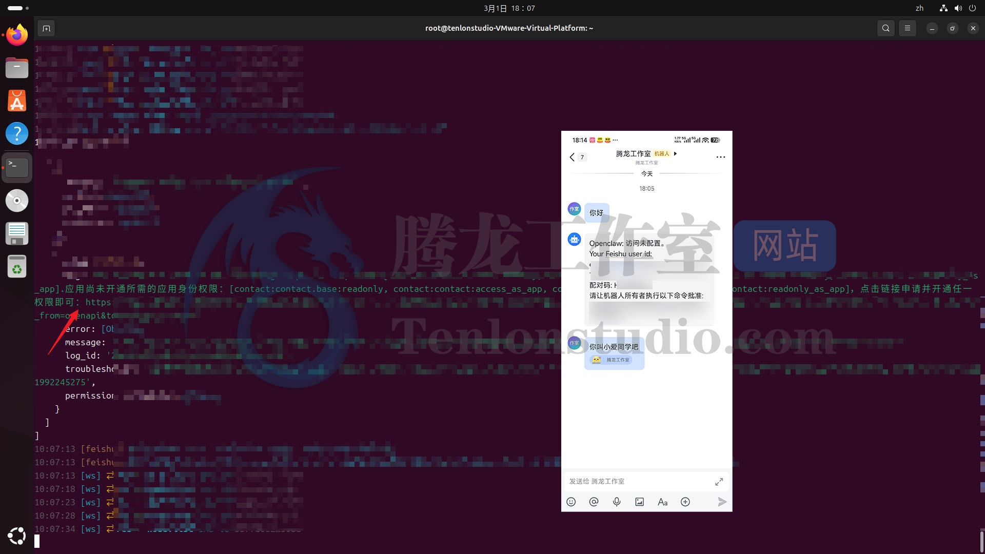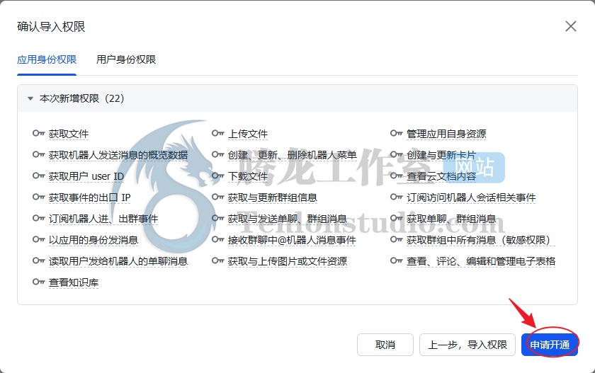 输入命令:openclaw-cn gateway –port 18789 –verbose 重新启动网关。再次飞书发送消息,这时应该没有回复,转到终端,应该提示需要增加权限,并且给出了链接。