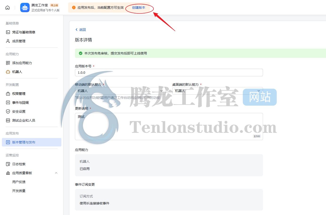 创建版本保存后就可以直接发布了。