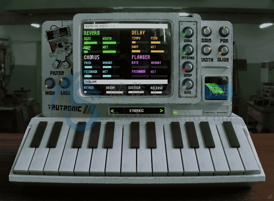 复古 FX 套件:使用 TruTronic 提供的特殊复古风格 FX 套件增强和塑造声音,包括频率波动、增益下降、噪声纹理、劣化、合唱、镶边、反向和延迟。