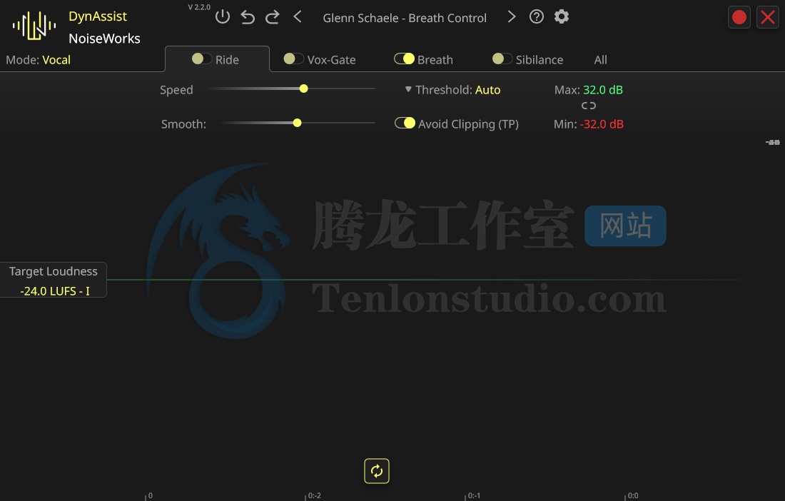 在功能层面,NoiseWorks DynAssist 提供自动音量平衡功能,可根据目标响度标准对整段人声进行精细调整,使音量分布更加均匀自然;其 AI 智能门限能够精准识别人声与背景噪声,有效去除空白段与底噪,同时避免切断音节;呼吸声与齿音控制模块可自动检测并进行柔和处理,使声音更加清晰、通透。此外,完整版本还支持乐器模式,可对鼓、贝斯等动态较大的乐器进行智能动态优化,实现更统一、更专业的混音效果。