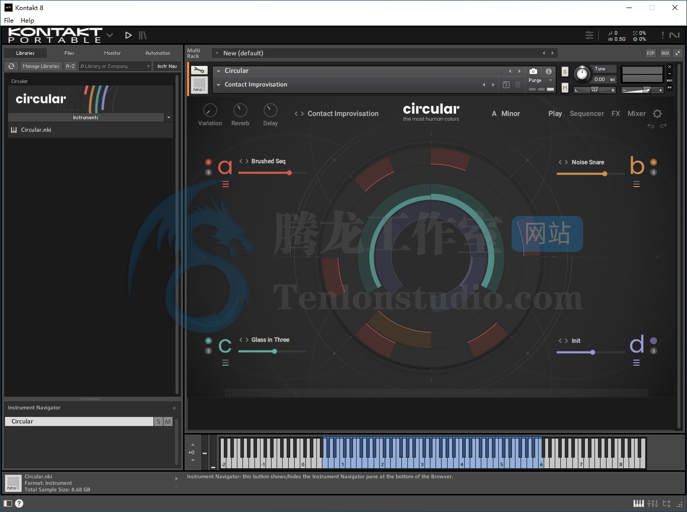 Native Instruments 的 Circular 是一款非常独特且具有创意性的虚拟乐器,它不同于传统的合成器或简单采样库,而是围绕 动态序列和声音演变 设计的音乐工具。它运行在 Kontakt 或免费的 Kontakt Player (8.2.1 以上版本) 上,是 Native Instruments 在 Komplete 系列 中较新推出的产品之一,通过将简单的音符或和弦自动转化成节奏感和动感十足的音景来帮助制作音乐。