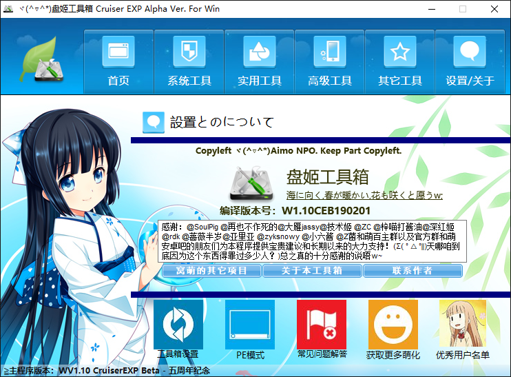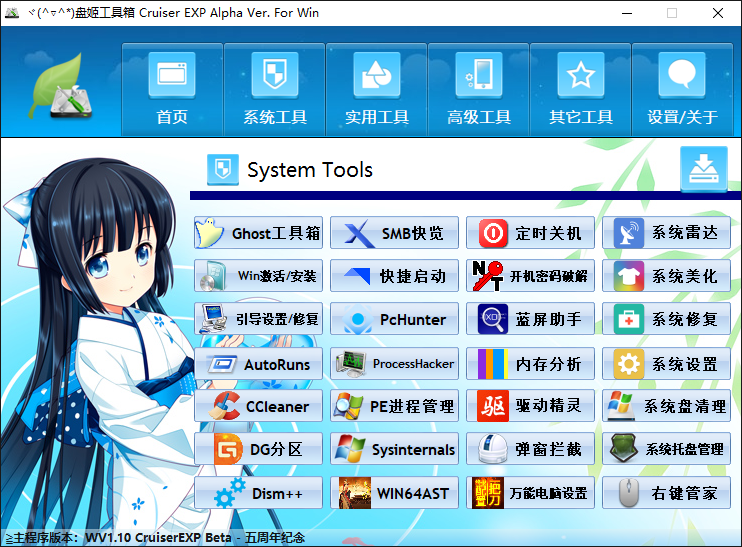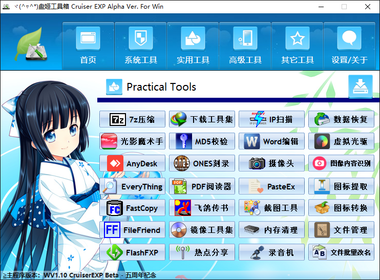 盘姬工具箱是一个以萌化为主题的绿色综合整合包项目,它集成了一些Win平台你所能想或不能想到的大大小小的功能。包含了修复系统、恢复网络、抓包、热点分享、资源下载、图像识别等100多种工具。