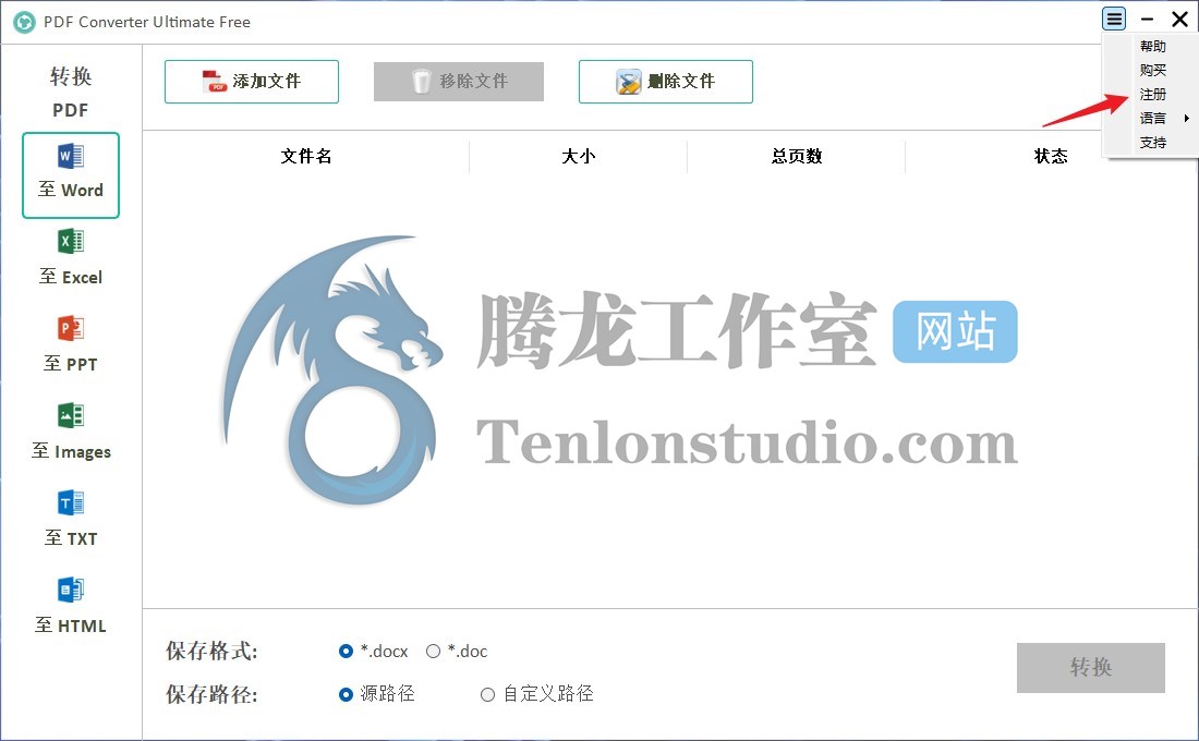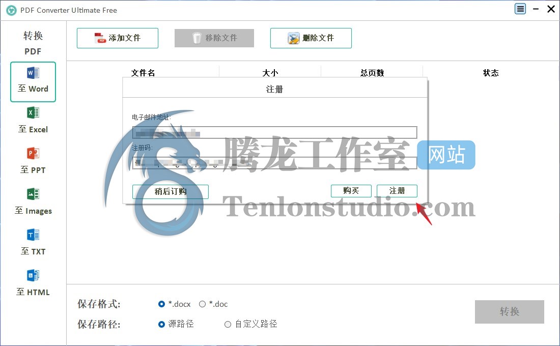 首先下载并安装 PDF Converter Ultimate,点击右上角选项卡 -【注册】。