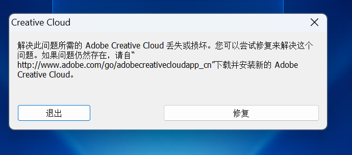 为啥一直提示Adobe Creative Cloud 丢失或损坏。